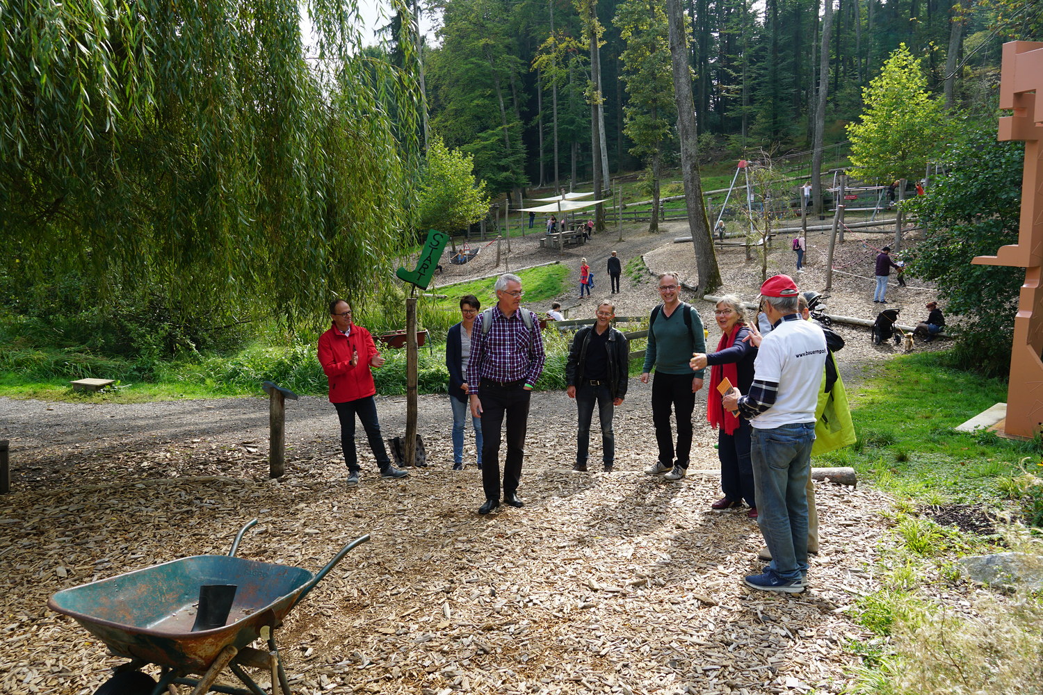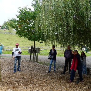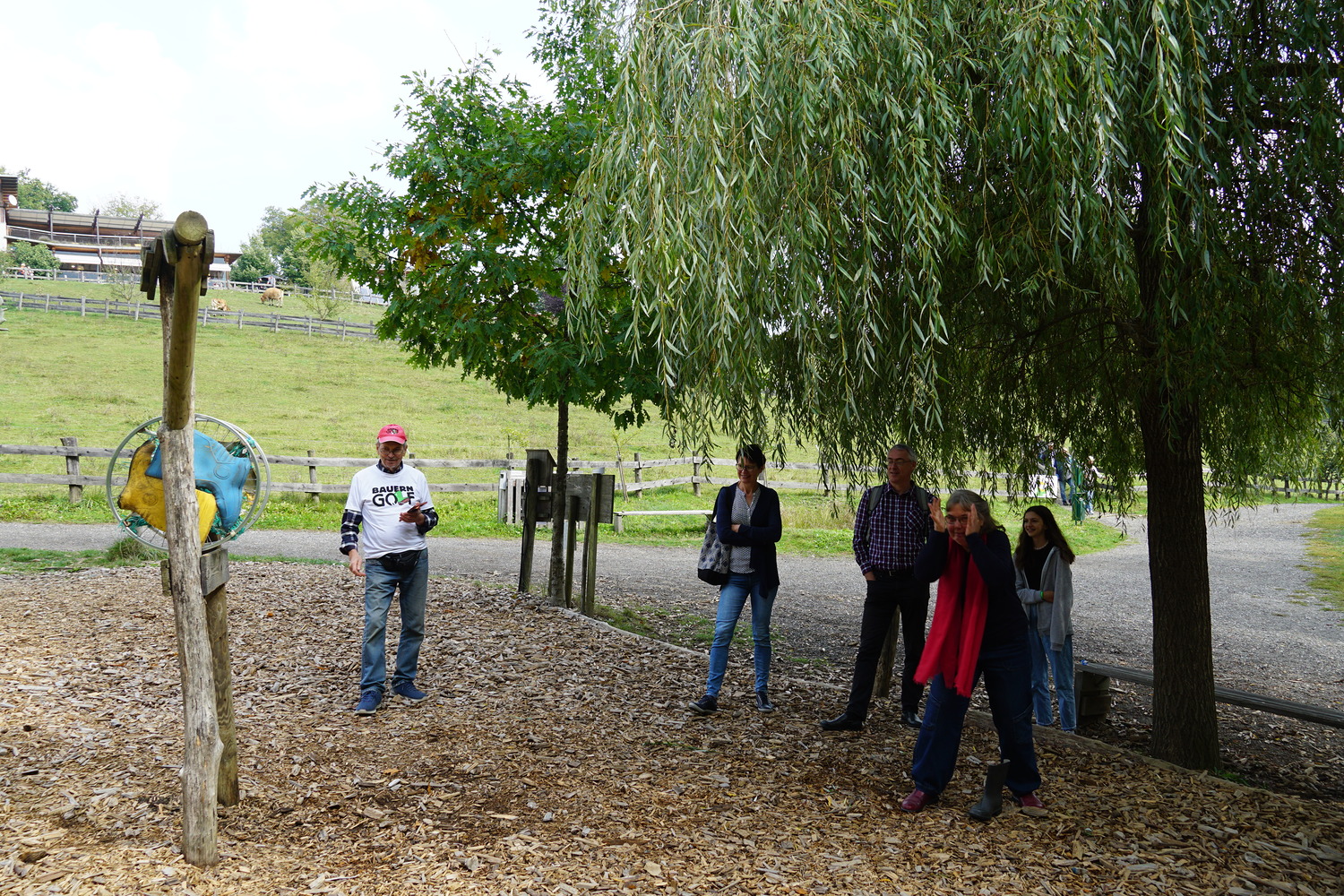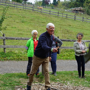 Dann ging es weiter mit einem sehr schmackhaften Bio-Essen in der „Öko-Essbar“ bei Zotter. Als ideale Verdauungsmöglichkeit – und als großes Vergnügen – erwies sich im Anschluss das „Bauerngolfen“. Mit dem gleichen Elan, mit dem der AK Nachhaltigkeit sich um schöpfungsfreundliche Projekte bemüht, wurden auch die Gummistiefel geworfen;-) Vom ältesten Mitglied, Alois Wolkinger, über den ehemaligen KA-Generalsekretär Stefan Kaltenegger bis zur kleinen Elsa waren alle mit Freude dabei.
