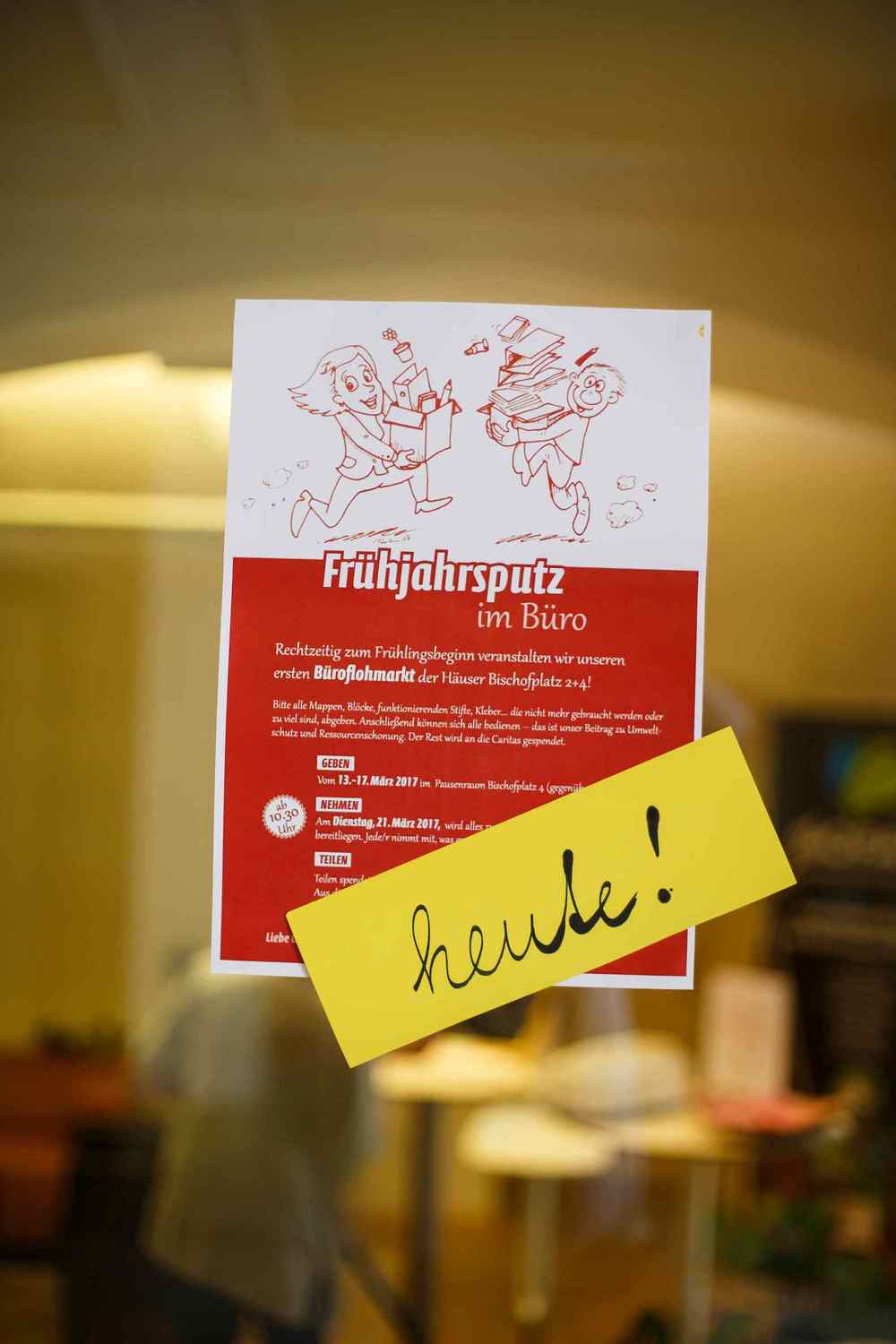Zum Frühlingsbeginn rief das Team "Pro Schöpfung" zu einem "Frühjahrsputz im Büro" auf und veranstaltete einen Büroflohmarkt im Ordinariat, unter dem Motto: „Geben, Nehmen und Teilen“.