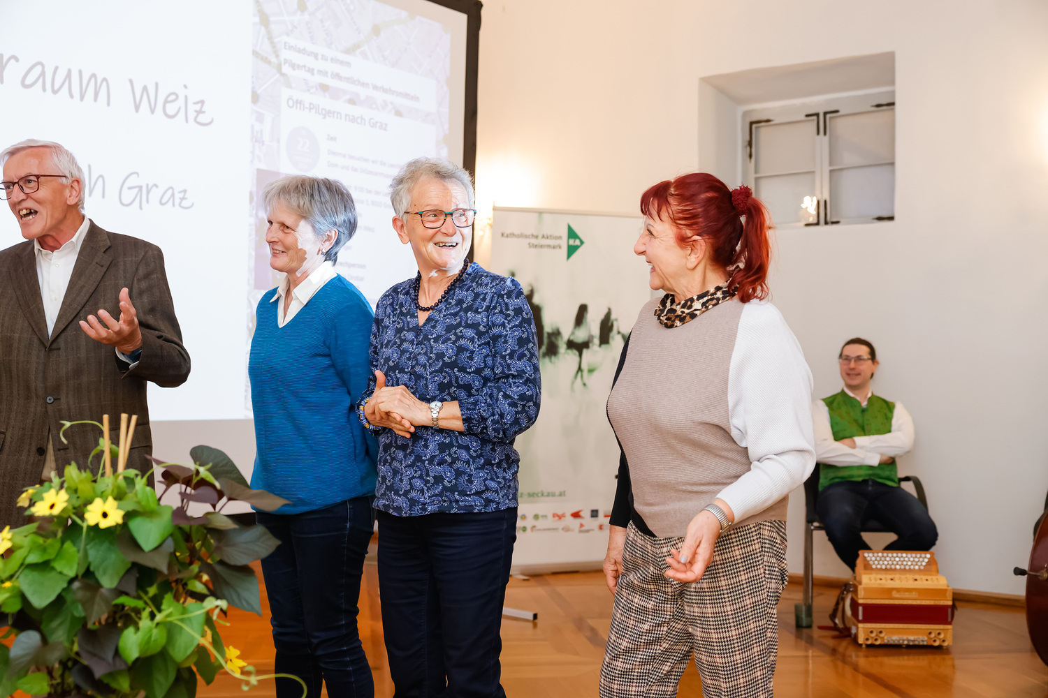 Zwei Projekte hatten es der Jury besonders angetan. Sie wurden daher zu gleichwertigen Siegern gekürt: Beim „Öffi-Pilgern“ des Seelsorgeraums Weiz werden Orte des gelebten Glaubens besucht, die Anreise nach Graz erfolgt öffentlich und wird mit über WhatsApp versendeten Impulsen begleitet. Von der Pfarre St. Rupert-Hohenrain aus begibt sich eine bunte Gruppe von Menschen monatlich auf eine spirituell und inhaltlich begleitete Schöpfungswanderung.