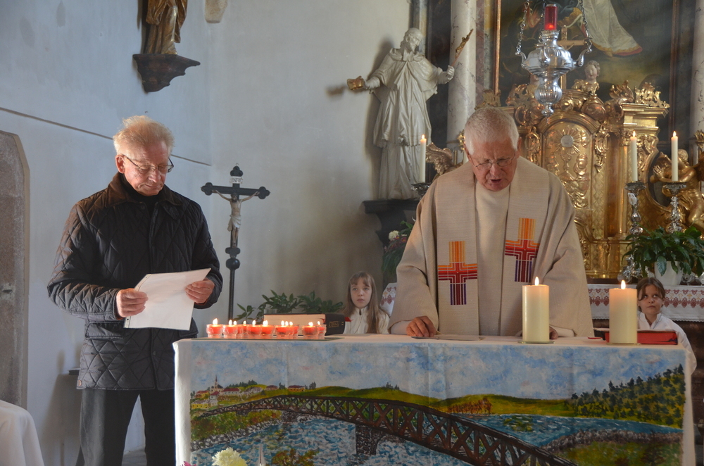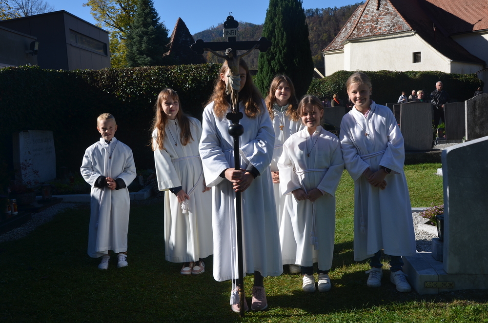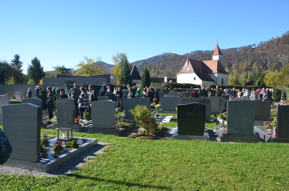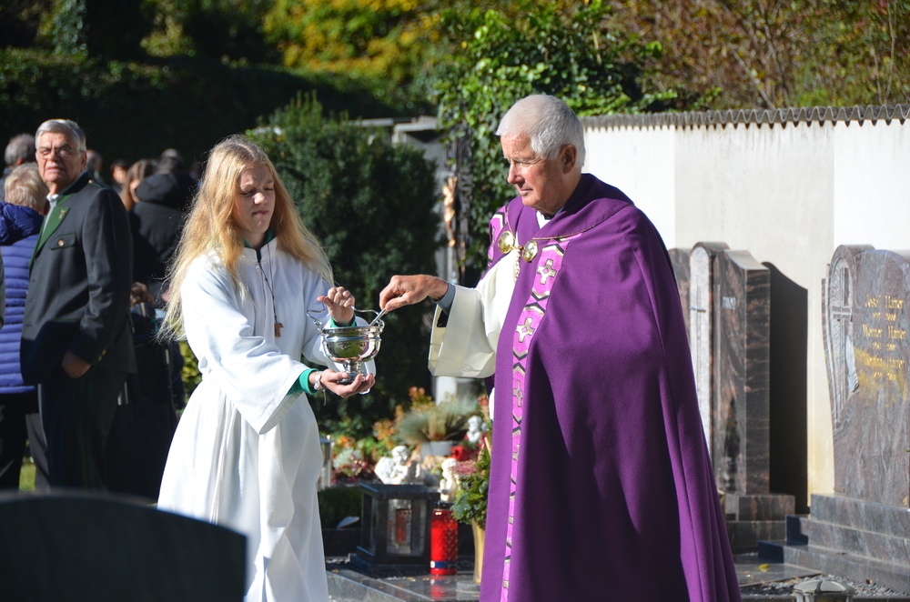 Im Anschluss an die hl. Messe wurden alle Gräber am Kirchen-und Ortsfriedhof gesegt, wozu viele Angehörige bei strahlend warmen Herbstwetter am Grab ihrer Lieben sich versammelt haben.