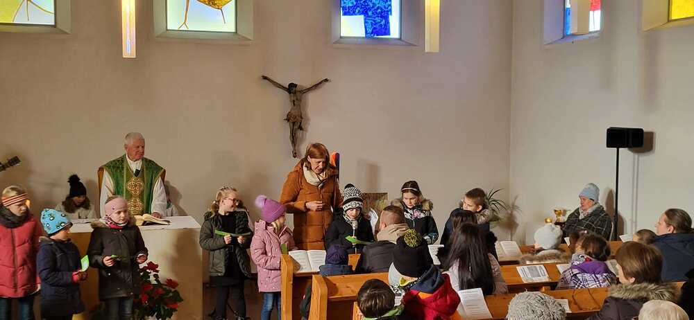 Durch die Unterstützung der Sänger.innen des Erstkommunion-Ensembles unter Katharina Wesener und Toni Gschier wurden wir schon mit den schwungvollen Liedern vertraut.