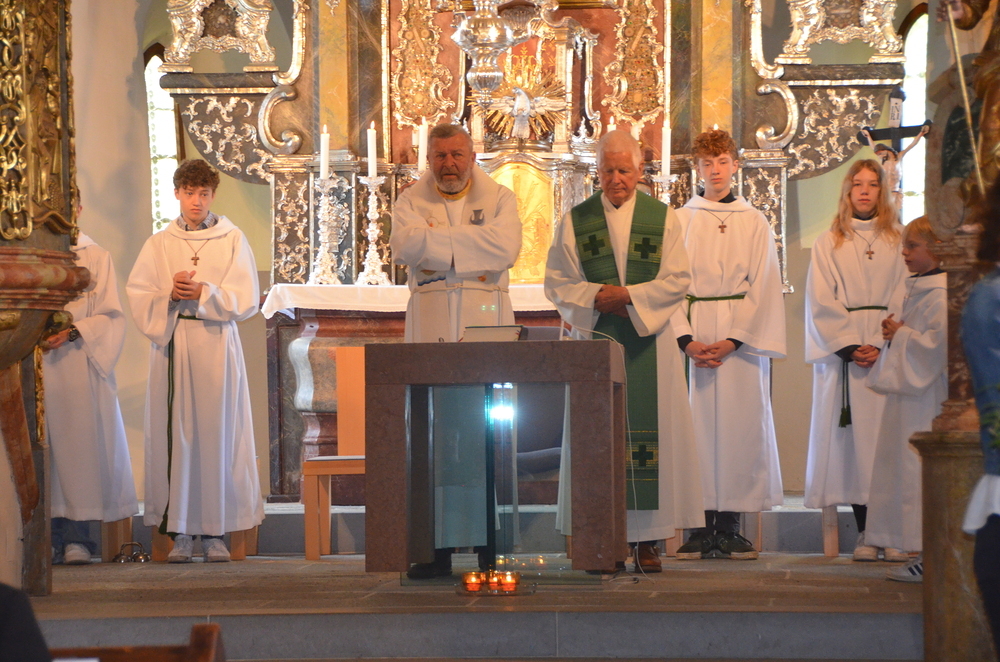 Der festliche Anlass begann mit einem Gottesdienst, der von unserem Pfarrer Dr. Horst Hüttl zelebriert wurde. Das Sonntagsevangelium (Markus 4,26-34) verdeutlichte auf wunderbare Weise, wie Gott die Ehe heiligt: