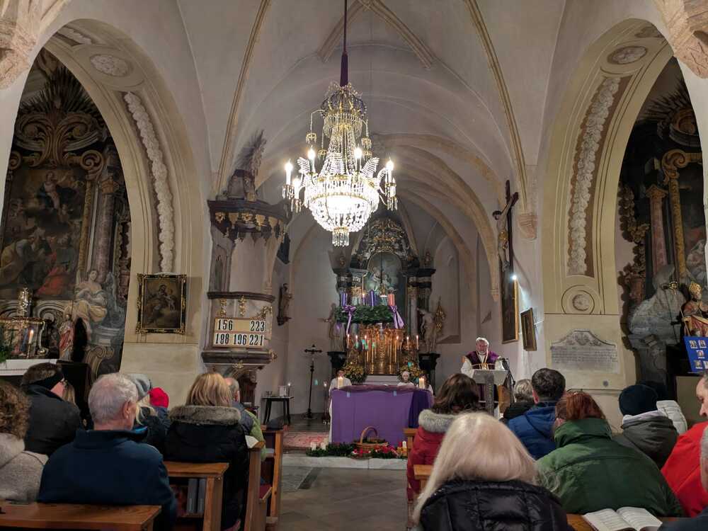 Bei beiden Gottesdiensten wurden die mitgebrachten Adventkränze gesegnet und alle Mitfeiernden konnten in der adventlich geschmückten Kirche in diese Atmosphäre eintauchen.