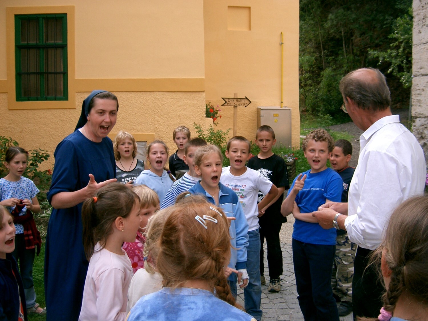 Sr. Maria singt zum Morgenlob ein Lied mit den Kindern