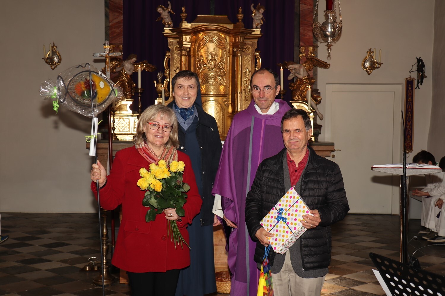 Pfarrer Johann Karner bedankt sich bei Sr. Maria