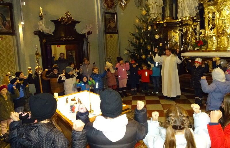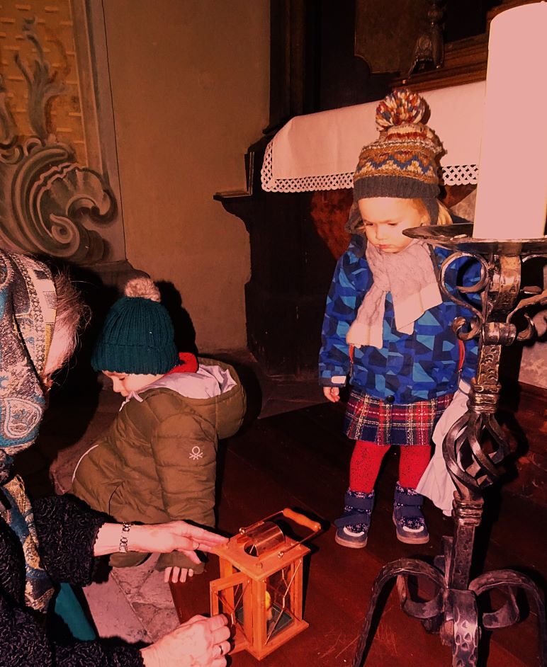 Viele Kinder und (wie ich heute erfuhr) auch Großmütter 80 plus waren in die Kirche gekommen. Wir haben von ganzem Herzen gesungen, von „Wer klopfet an?“ bis zur „Stillen Nacht“. Mein Gott, was ist dieser Brauch der Herbergsuche so schrecklich aktuell…