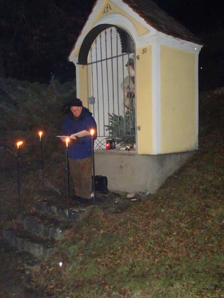 Dort führte Obmann Hans Sobl bereits zum 22. Mal durch ein umfangreiches einstündiges Programm mit vielen bekannten Weihnachtsliedern zum Mitsingen einladend, sinnigen Gedichte und Texten, zum Mitbeten sowie mit elektronischer musikalischer Umrahmung zur wunderbaren Einstimmung auf das bevorstehende Weihnachtsfest. Aber auch an die im Jahr 2017 verstorbenen 8 Kameraden wurde mit Anzünden von Kerzen gedacht.