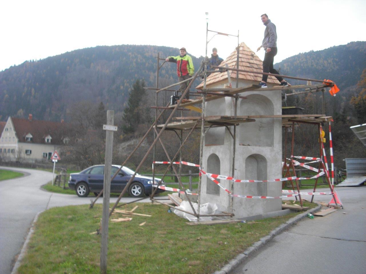 Restaurierung beim Werfenbauer-Kreuz in Adriach am 18. November 2017