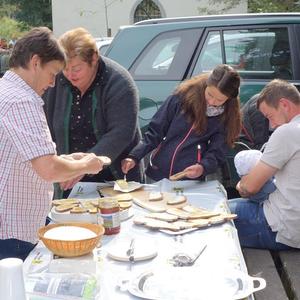 Anschließend kredenzte die Kapellen-Betreuerfamilie Gabriela & Josef Fuchs vulgo Leeb in der Pölla eine traditionelle "Barthlmä-Jause" (Brot, Butter und Honig) auf. Ein herzliches Vergelt`s Gott allen Beteiligten!