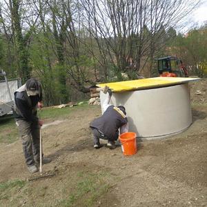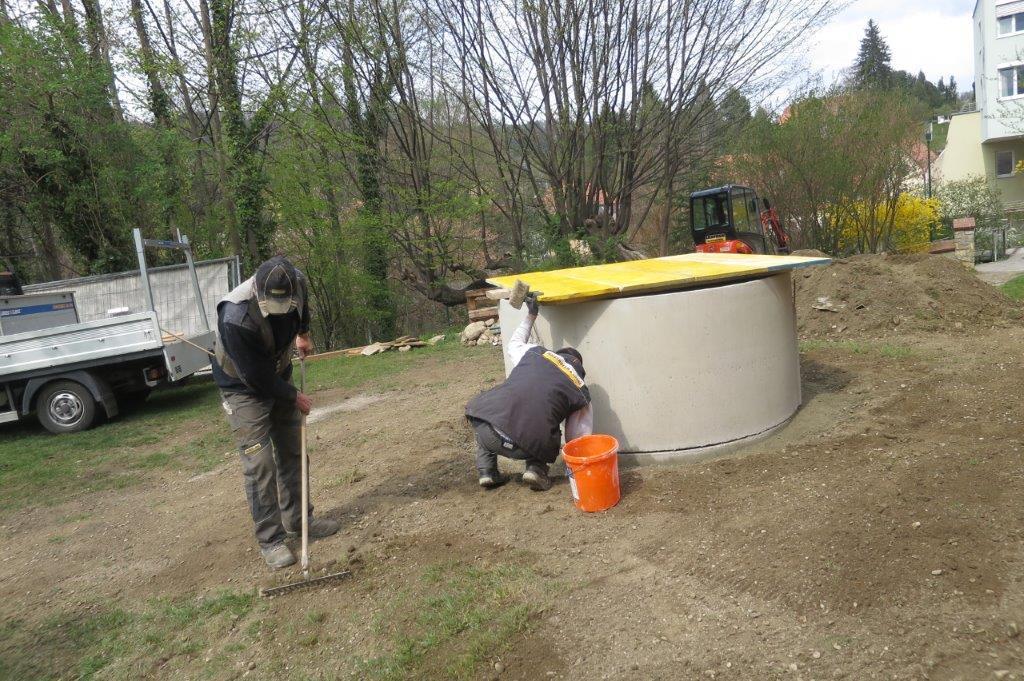 Arbeiten am Brunner im Klostergarten