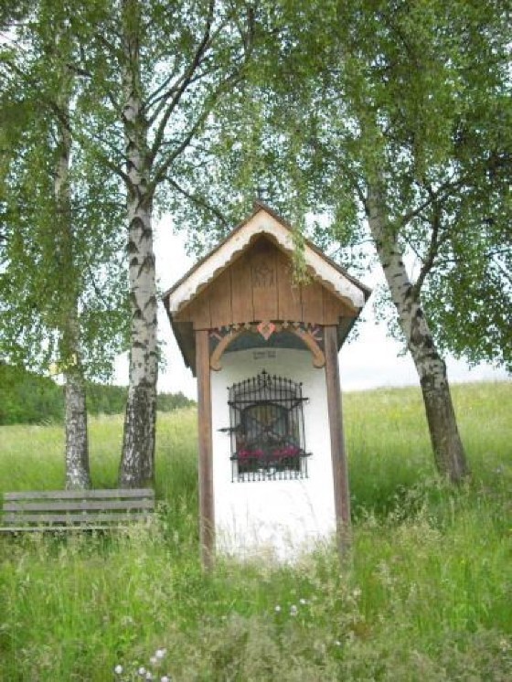 Das Gnadenbild im Sigl-Kreuz ist von zwei farbenprächtigen Maria- und Jesus-Statuen flankiert und die Nische ist mit einem kleinen Holzkreuz, Blumenstöcken und Kerzen liebevoll geschmückt. Neben dem Sigl-Kreuz steht eine gemütliche Holzbank, die zum Verweilen und Besinnen einlädt.