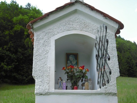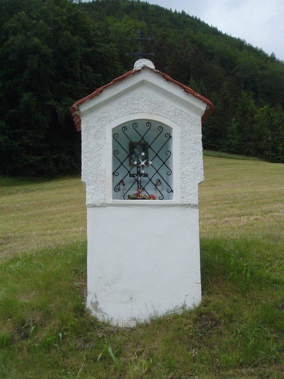 Dieses Zeichen des Glaubens steht am rechten Ufer des Tyrnauer Baches – kurz vor der Ortschaft Schrems – auf einer Wiese, die früher auch „Kreuzacker“ genannt wurde. Es beherbergt hinter einem kleinen, verglasten Gitter ein schönes Marienbild und Statuen von verschiedenen Heiligen.