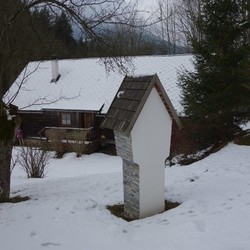 Dieses schöne Zeichen des Glaubens steht auf dem Grundstück einer Zuhube in der Schrems. Nach einer schweren Erkrankung gelobte der Besitzer Norbert Haidinger vulgo Salitrer, nach seiner Genesung im Jahre 2000 dort einen Bildstock zu errichten.