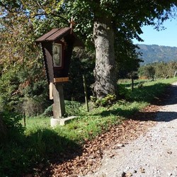 Ursprünglich stand dieses religiöse Kleindenkmal zwischen zwei mächtigen Linden und beherbergte eine schöne ein Meter hohe Skulptur von Maria mit dem Jesuskind im Arm, geschmückt mit Seidenblumen, Kerzen und Gestecken.