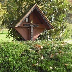 Auf dem Weg nach Pfannberg, an der Abzweigung zum Gut Pichlhof, steht ein rötliches Wegkreuz aus Holz mit einem Kruzifix, der künstlerischen Darstellung des gekreuzigten Christus. Das Kruzifix (lat. „ans Kreuz geheftet“) ist Sinnbild für das Opfer Christi, das dieser zur Erlösung der Menschheit gebracht hat.
