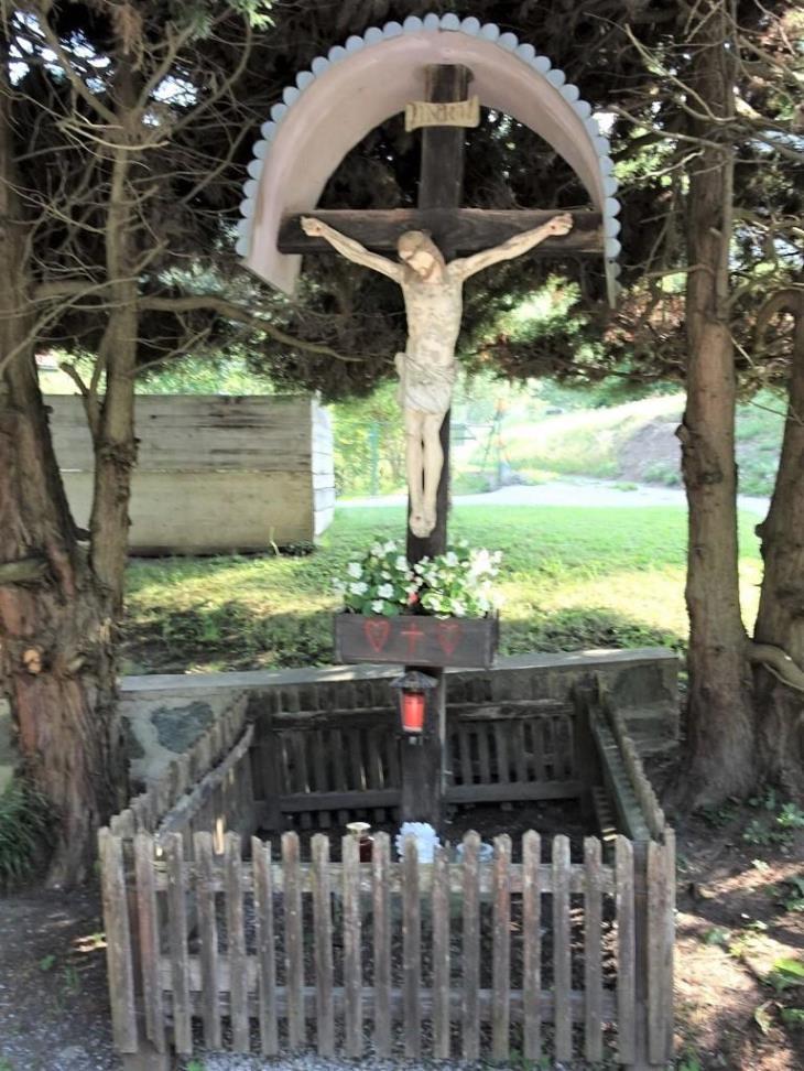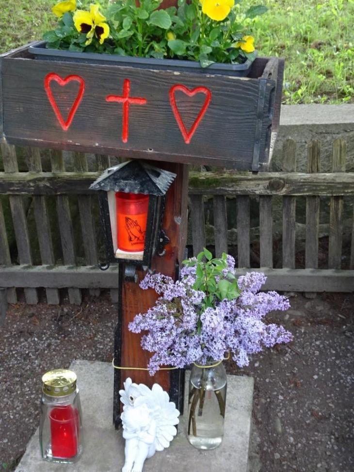 Das Holzkreuz, das in einem Betonfundament verankert ist, wurde von Herbert Fasser mittlerweile auf Hochglanz gebracht.