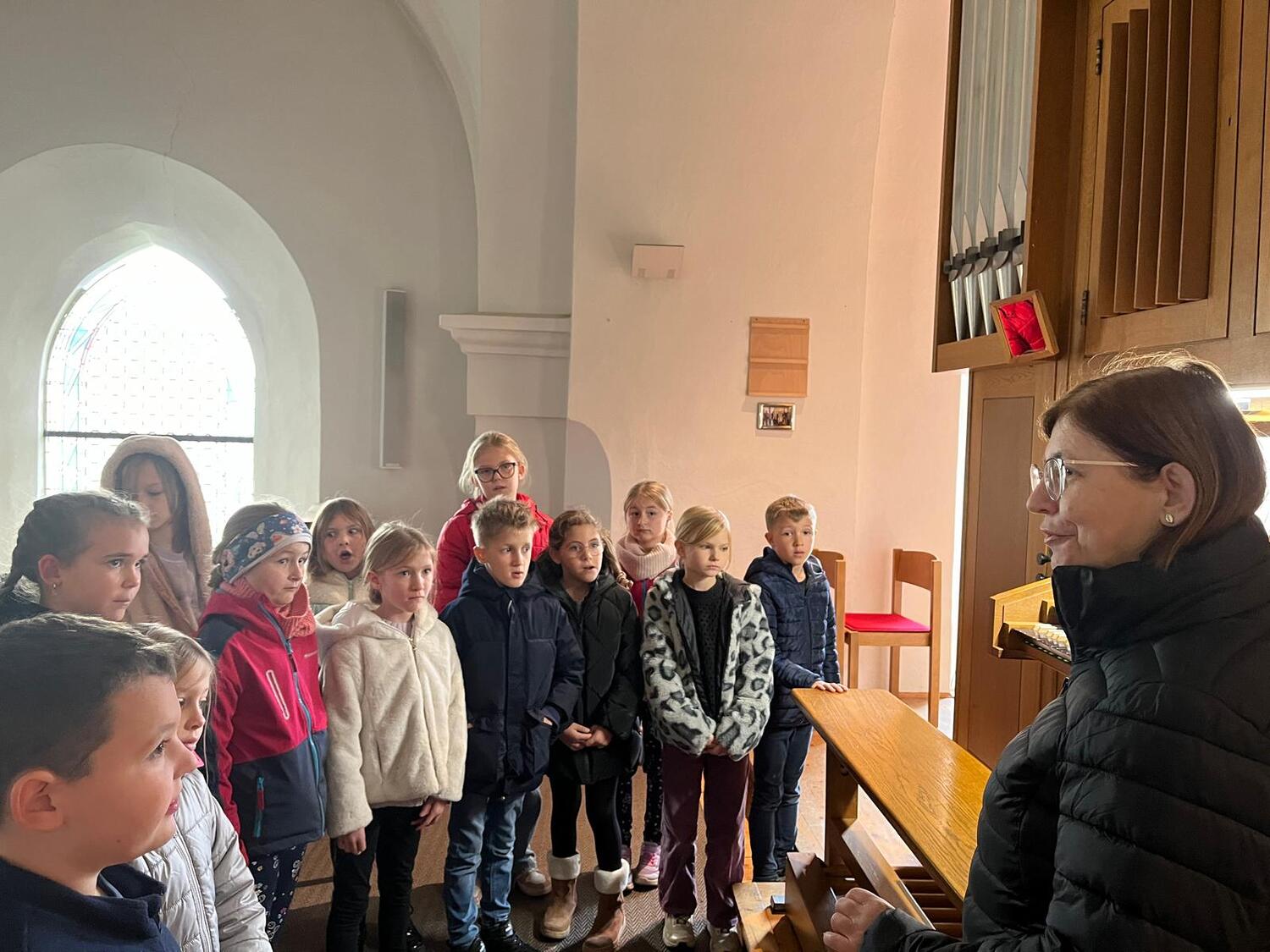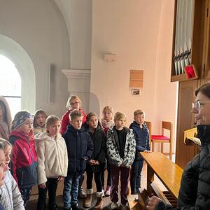 So durften die Kinder bewusst den Klängen der Orgel lauschen und selbst ausprobieren, wie es sich anfühlt, auf dem Instrument zu spielen. Was in der Sonntagsmesse ansonsten von den Kindern nur hörbar ist, durfte direkt am Chorraum der Kirche entdeckt werden. Danke für diese Erfahrung und vielleicht wird ja dadurch die Neugierde geweckt, dieses Instrument spielen zu lernen.