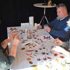 Im Vorfeld des Be­geg­nungs­nach­mit­tags wur­den eifrig Blätter und Blüten ge­sam­melt und ge­presst, die dann mit et­was Ser­viet­ten­kle­ber auf Glä­sern oder ein­fach nur mit dem Bügel­eisen auf Kerzen an­ge­bracht wurden. So entstanden bunte Lichtbringer, die die herbst­lich­en Farben fest­hal­ten und etwas Freude und Licht in die grauen No­vem­ber­tage brin­gen kön­nen.