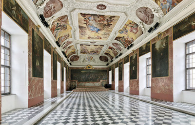Der im Westtrakt des äußeren Hofes befindliche Saal ist das ehemalige Sommerrefektorium der Klostergemeinschaft. Er wurde durch die Stiftung von Fürst Johann Seyfried von Eggenberg (*1644; †1713) ermöglicht und ab 1691 nach Plänen von Joachim Carlone (*1653; †1713) errichtet.