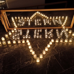 Viele, aus Kerzenlichtern gestellte Figuren konnten bestaunt werden: ein Engel, ein Kelch, ein buntes Kirchenfenster, Sterne in allen Varianten, ein schön beleuchteter Altarraum mit einem Engel und der Engel des Herrn in verschiedenen Sprachen, ein Sternenhimmel und vieles mehr. Als Besucher konnte man sich auch aktiv beschäftigen – einen Leuchtstein in den Himmel legen und ein Sterngedicht mit nach Hause nehmen.