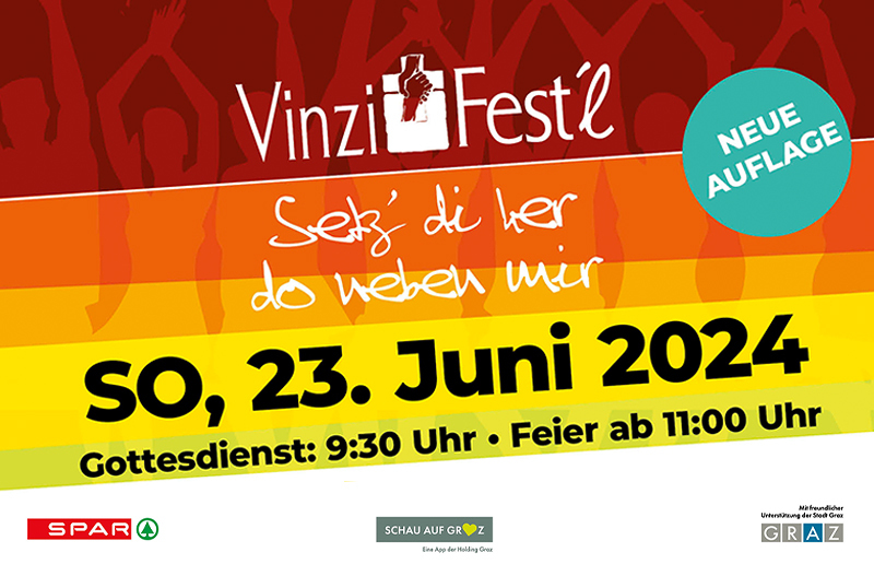 Unter dem altbekannten Motto „Setz‘ di her do neben mir“ laden die Pfarre Graz – St. Vinzenz und die VinziWerke herzlich zum VinziFest’l ein. In diesem Jahr gehen wir mit der Neuauflage zurück zu unseren Wurzeln und nehmen uns bewusst Zeit, um gemeinsam zu sitzen, zu reden und zu feiern.