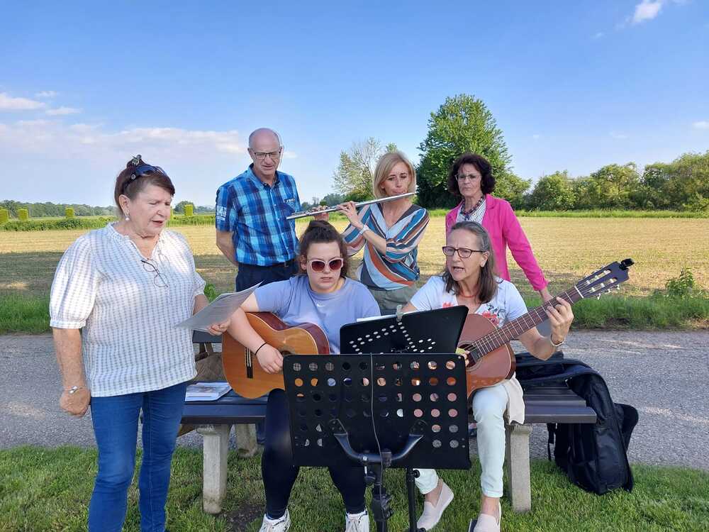 Mitten im blühenden Mai, begleitet von Summen und Zwitschern lässt es sich ganz anders singen und beten, in großer Dankbarkeit für Gottes schöne Schöpfung.