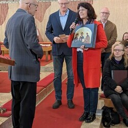 engagiertes Mesnerteam, das mit ihm feierte. Pfarre und besonders das Liturgieteam bedankten sich auch für seine vielfältigen anderen liturgischen Dienste mit einer Ikone als Geschenk.