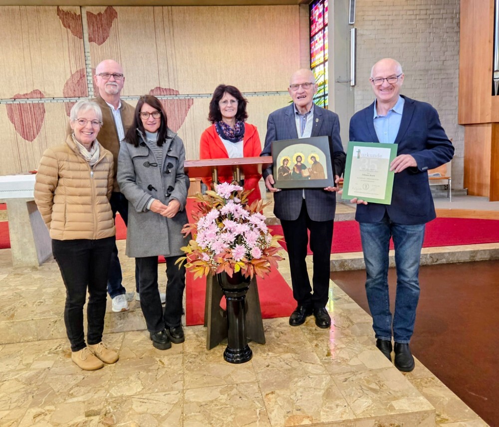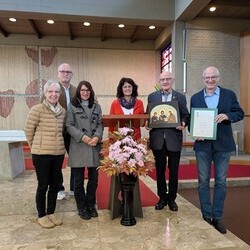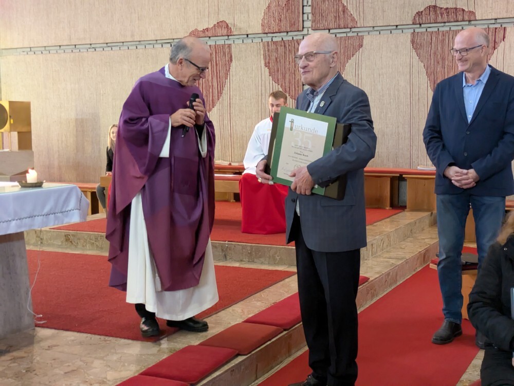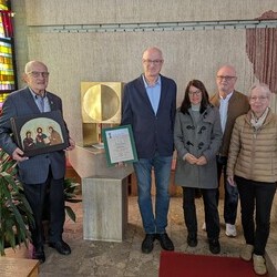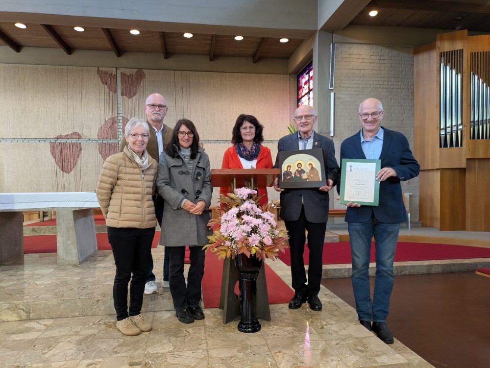 Hans Koch wurde nach dem Allerseelengottesdienst am 2.11. die goldene Ehrennadel der Mesnergemeinschaft überreicht. Unglaubliche 60 Jahre lang, auf den Tag genau, hat er diesen wertvollen Dienst in der Pfarre Lieboch geleistet. 50 Jahre lang alleine, seit 10 Jahren gibt es ein