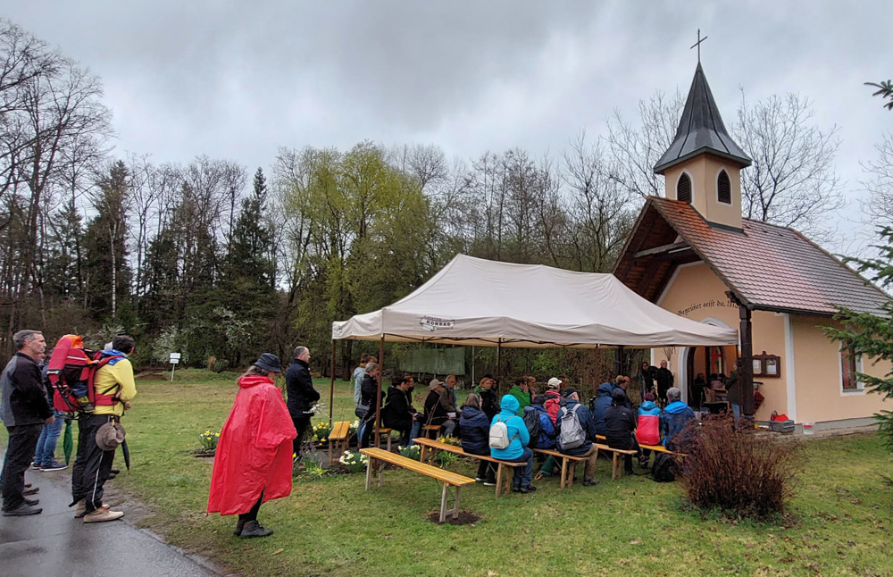Am Palmsamstag, dem 9. April 2022, fand die erste Sternwallfahrt des Seelsorgeraumes Kaiserwald statt. Ziel war die Kaiserwaldkapelle in der Pfarre Premstätten. Trotz ziemlichen Regens haben sich mehr als 60 Wallfahrerinnen und Wallfahrer eingefunden und bei der Wort-Gottes-Feier ihre Palmbuschen segnen lassen. Bei einer Agape konnten sich die Teilnehmerinnen und Teilnehmer austauschen und haben dann noch gesegnetes Salz für die Osterspeisen mit nach Hause genommen.