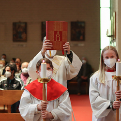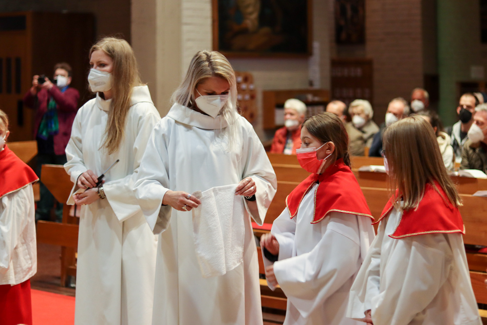 In einer etwas anders gestalteten Fußwaschung wurde jenen gedacht, die nicht oder nicht mehr am Leben der Kirche teilnehmen können oder möchten. Die Stühle blieben leer. Symbolisch für Rand- und Zielgruppen und jene Menschen, die unsere Gesellschaft mitprägen, wurden Kerzen entzündet. Als Zelebranten fungierten unsere drei Priester, drei Diakone sowie alle Pastoralreferentinnen und Referenten, welche den Sendungsauftrag im Seelsorgeraum Kaiserwald erfüllen.