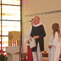 Maria Pitsch und Tina Schörgi stellten zwei starke Frauen in der Predigt vor. Die Heilige Maria und Edith Stein, die lange Zeit ihren Weg und den Glauben suchte und nach ihrer Berufung als Heilige Theresia Benedicta vom Kreuz in den Karmelitinnenorden eintrat. Sie wurde 1942 in Auschwitz ermordet.