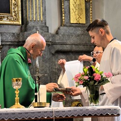 Seelsorger Anton Novinscak mit seinem heutigen liturgischen Team
