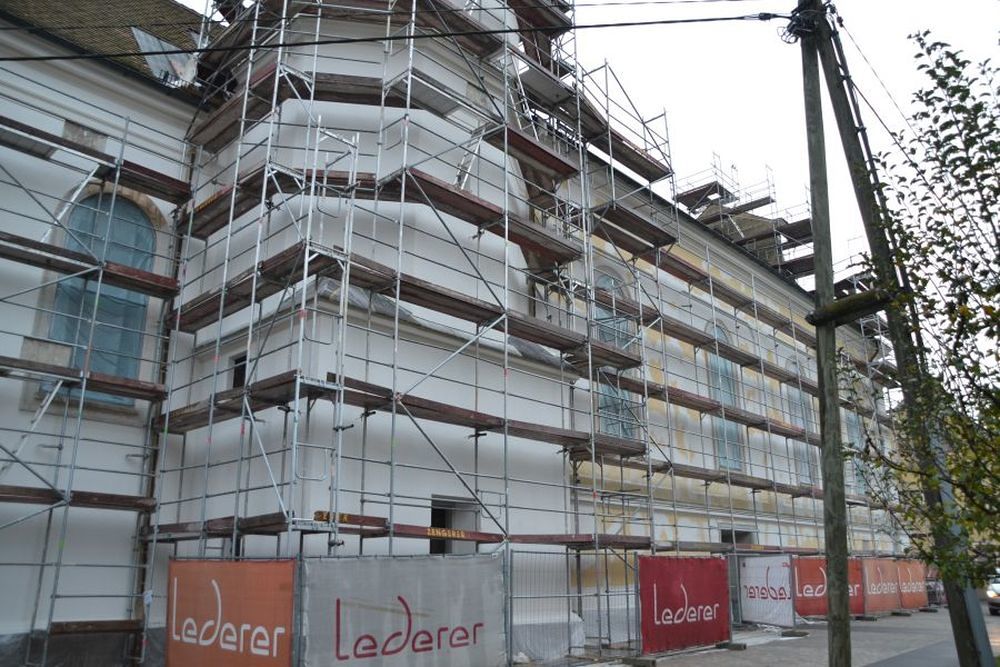 Mitte September 2016 erfolgte der Start der Renovierungsarbeiten. Viele Quadratmeter Gerüst wurde aufgestellt, die Fassade gereinigt, die richtigen Farben ausgesucht und die Fassade neu gestrichen.
