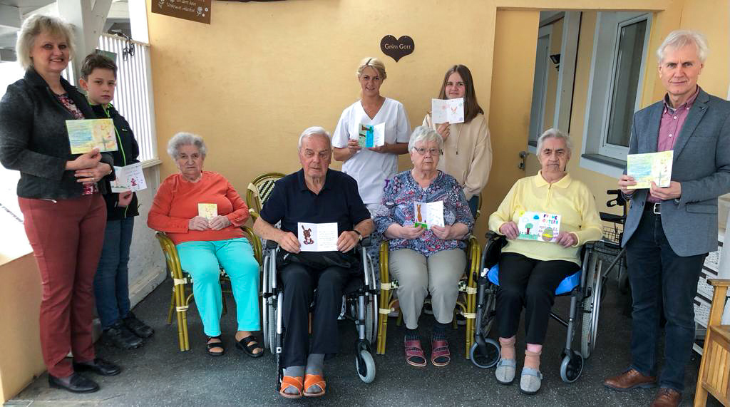 Die Schülerinnen und Schüler der VS Lannach, VS Tobelbad, VS Wundschuh, VS Dobl, MS Premstätten, Priv.-MS Ursulinen, MS Arnfels, MS Leutschach und dem Priv. Gymnasium Ursulinen schrieben und malten liebevoll rund 2000 Karten für das Caritas Pflegewohnhaus in Lannach, das Pflegeheim Amicalis, das Betreute Wohnen und das SeneCura Pflegeheim in Premstätten, die Seniorenresidenz Waldhof in Lieboch, das Adcura Seniorenwohnhaus in Arnfels, das Annaheim der Kreuzschwestern und das LKH-Univ.-Klinikum Graz.